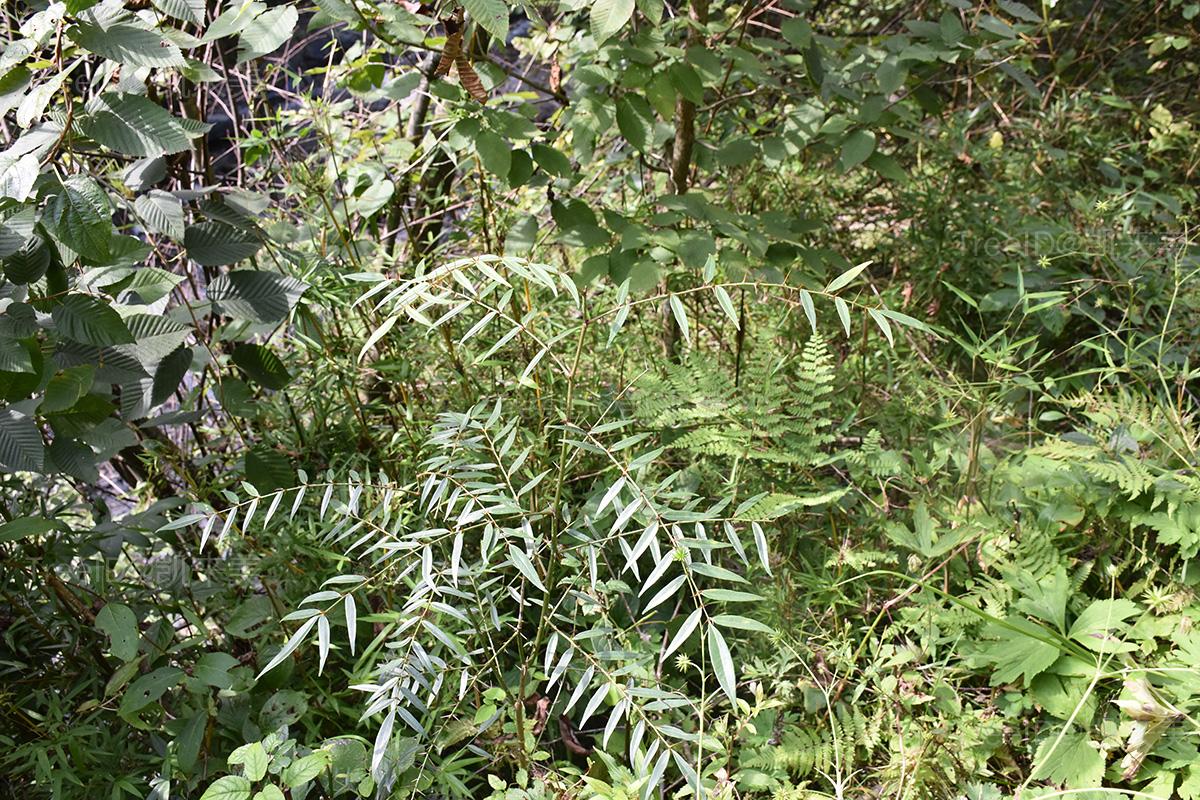 羽状复叶有小叶9-23片;小叶互生,披针形,长2-11厘米,宽1-4厘米,叶背中脉上常有锐刺,叶缘有锯齿状裂齿