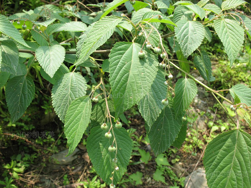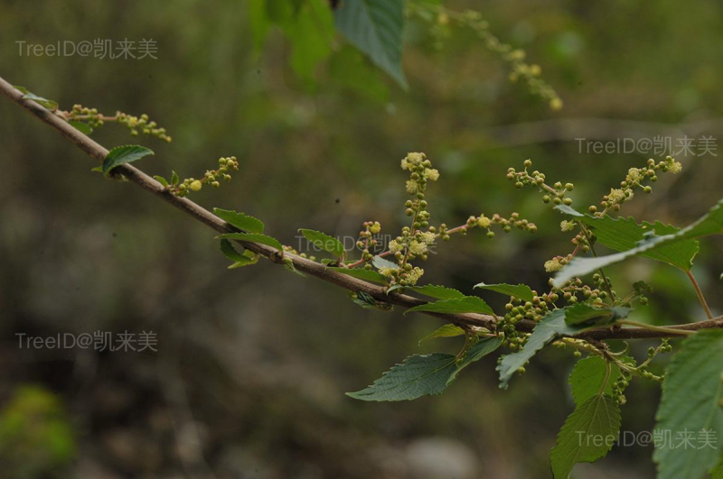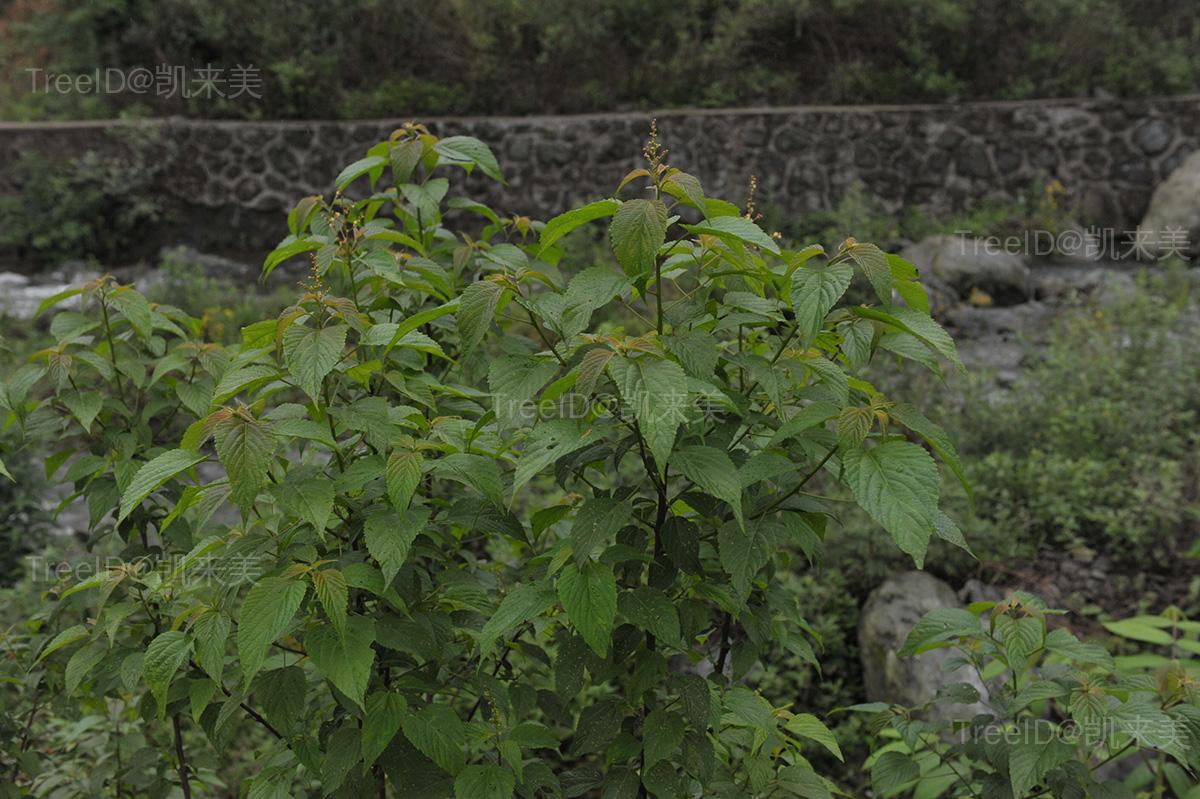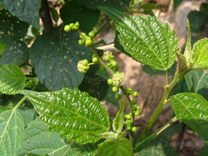 叶互生,卵形,长约3-7厘米,宽约1.4-4厘米,边缘有锯齿;叶柄长1-4厘米。总状花序或圆锥花序,顶生;花单性,雌雄异株,无花瓣。蒴果小,近球形。