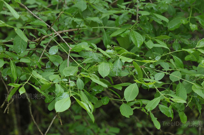 叶长椭圆形,长6-11厘米,宽2-4厘米,边缘具细密锯齿;叶柄长8-15毫米。