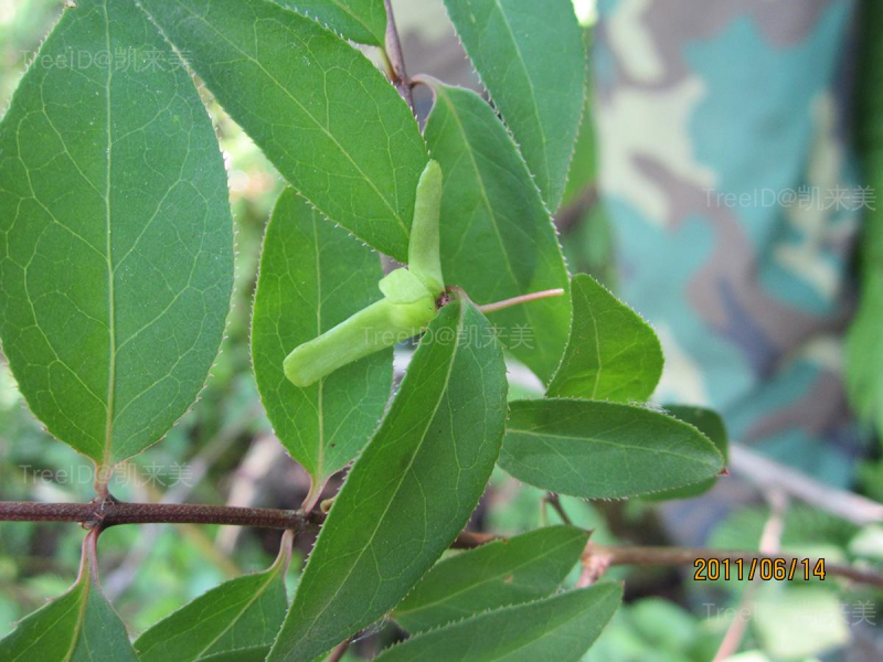 叶倒卵形、长卵形或椭圆形,长3-7厘米,宽2-3厘米;叶柄长2-5毫米。