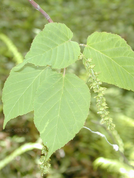 单叶对生,卵形,长6-14厘米,宽4-9厘米,先端有尖尾,边缘具不整齐的钝圆齿。总状花序下垂;花黄绿色,5数。翅果黄褐色,果翅张开成钝角或近水平。