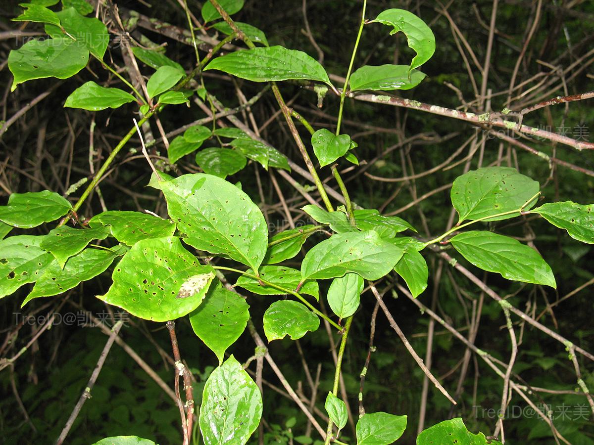 叶长圆形或长圆状卵形,长3.5-8厘米,宽3-4厘米,先端尾状渐尖;叶柄长4-10毫米,被长柔毛。