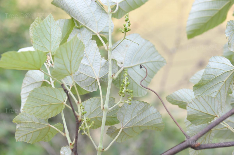 小枝圆柱形,有纵棱纹,被灰色或褐色蛛丝状绒毛。卷须2叉分枝,密被绒毛,每隔2节间断与叶对生。