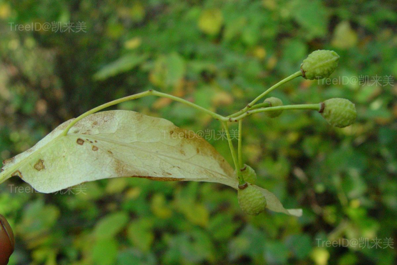 叶薄革质,卵圆形,先端急渐尖,基部斜心形或斜截形,边缘有细锯齿;叶柄纤细。聚伞花序有花6-8朵,花序柄纤细;苞片狭窄倒披针形,下半部与花序柄合生,基部有短柄;萼片长卵形。果实倒卵形。