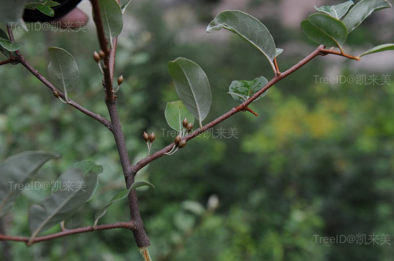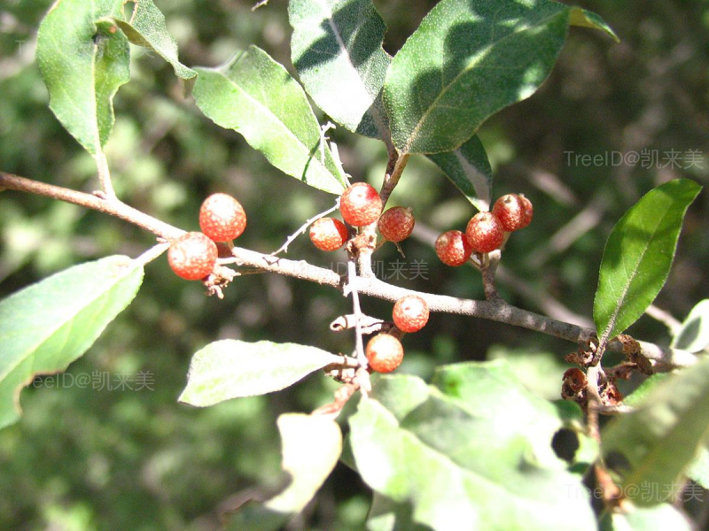单叶互生,椭圆形,全缘,下面密被银白色鳞片。 花黄白色,密被银白色盾形鳞片,1-7花簇生新枝基部,单生或对生。坚果浆果状,球形或卵圆形,熟时红色。
