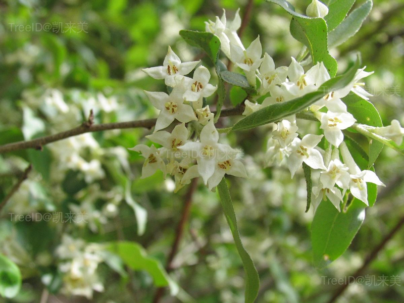 花黄白色,密被银白色盾形鳞片,1-7花簇生新枝基部,单生或成对生于幼叶腋;萼筒圆筒状漏斗形,长5-7毫米,裂片卵状三角形。