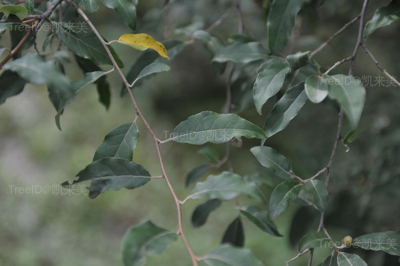 叶纸质或膜质,椭圆形至倒卵状披针形,长3-8厘米,宽1-3.2厘米,边缘全缘或波状,下面密被银白色和散生少数褐色鳞片;叶柄长5-7毫米。