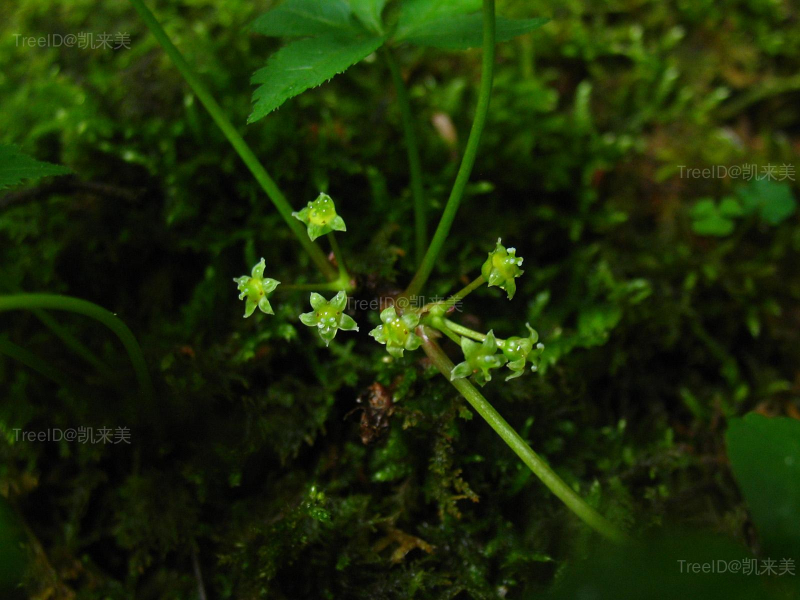 伞形花序,单个顶生,直径1.5-2厘米;花萼倒卵形,萼齿小;花瓣淡白色,三角形。