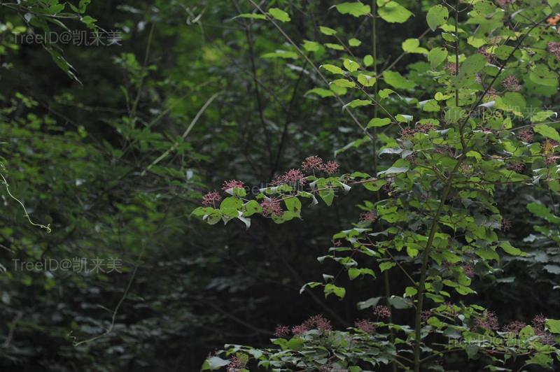 伞房状聚伞花序顶生,宽4.5-6厘米,被有贴生灰白色短柔毛;总花梗细圆柱形,长2-4.4厘米;花小,白色;花萼裂片4,尖齿状;花瓣4,舌状长卵形。