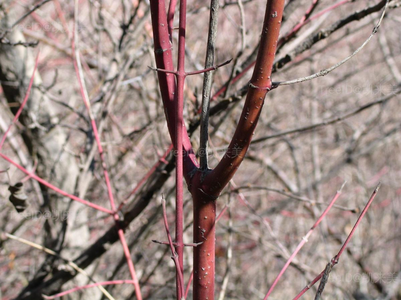 幼枝圆柱形,带红色,有稀疏柔毛,老枝淡黄色,无毛,有椭圆形皮孔。