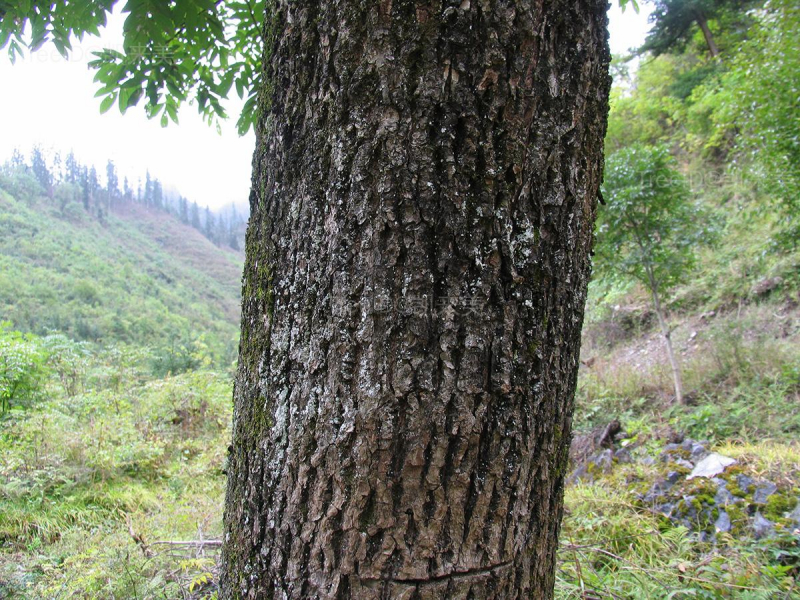 树皮灰褐色,纵裂。