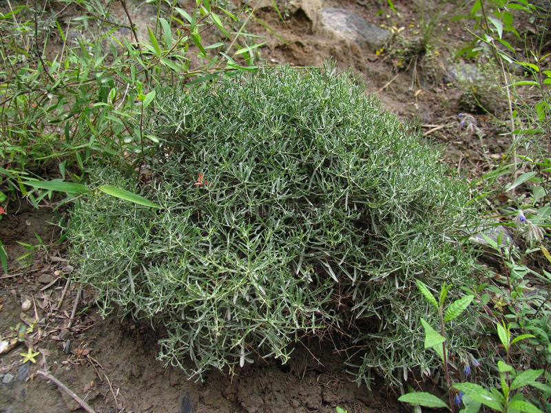 叶狭线形,长0.5-2厘米,宽0.5-4毫米,基部渐狭,无柄,均密被银灰色绢毛。