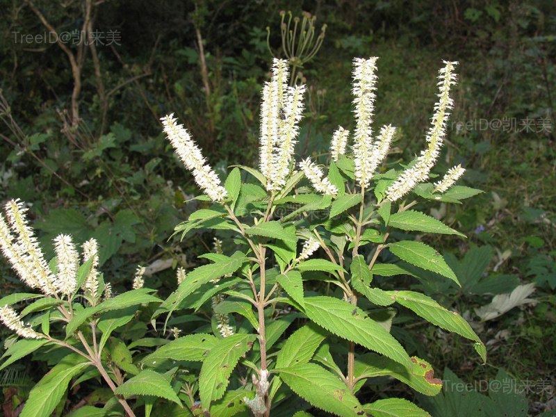穗状花序圆柱状,长6-20厘米,顶生或腋生,由轮伞花序所组成。花萼钟形,长约1.5毫米,外面被灰色短柔毛,萼齿5。花冠白色至淡黄色,长约5毫米,二唇形。