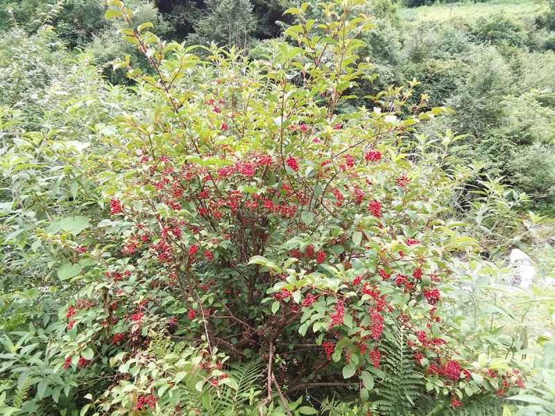 叶纸质,椭圆形至狭矩圆形,长6-11厘米,边缘除基部外具细锐锯齿;叶柄长1-2.5厘米。圆锥花序生于短枝顶端,长7.5-10厘米,总花梗长2-6厘米;花冠白色或淡红色,高脚碟状。果实紫红色,后转黑色,椭圆形。