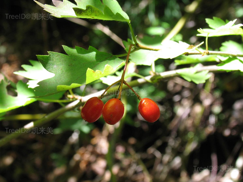 果实红色,椭圆形或近圆形,长8-10 毫米,直径7-8毫米。