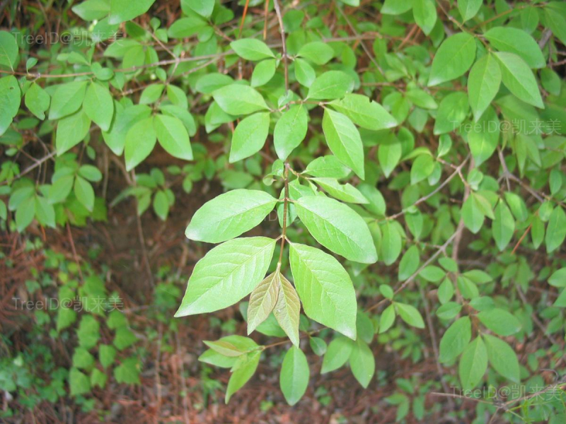 叶宽卵形至卵状披针形,长3-7厘米,上面疏生短糙伏毛,下面有短柔伏毛;叶柄长5-8毫米。