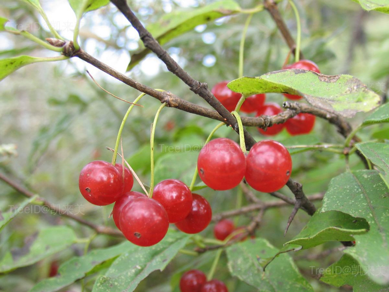 果实先红色后转黑色,圆形,直径约1厘米。