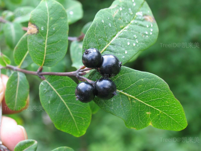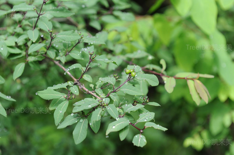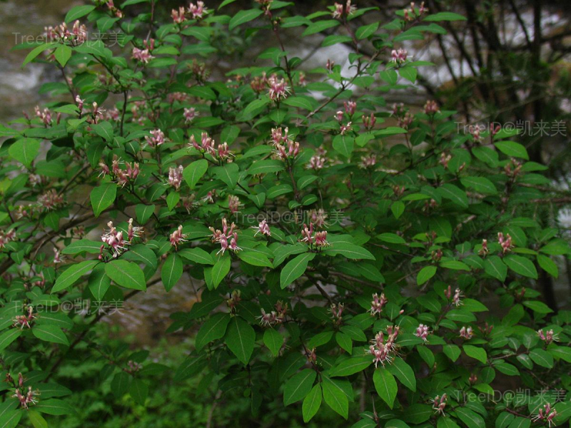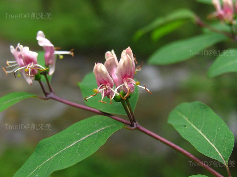 叶初发时带红色,椭圆形至卵状矩圆形,长2.5-6厘米,两端尖,上面叶脉均带紫红色,两面无毛。总花梗长约1厘米;相邻两萼筒分离;花冠先白色后变黄色,长约1厘米,基部具囊。果实黑色,圆形,直径5-6毫米。