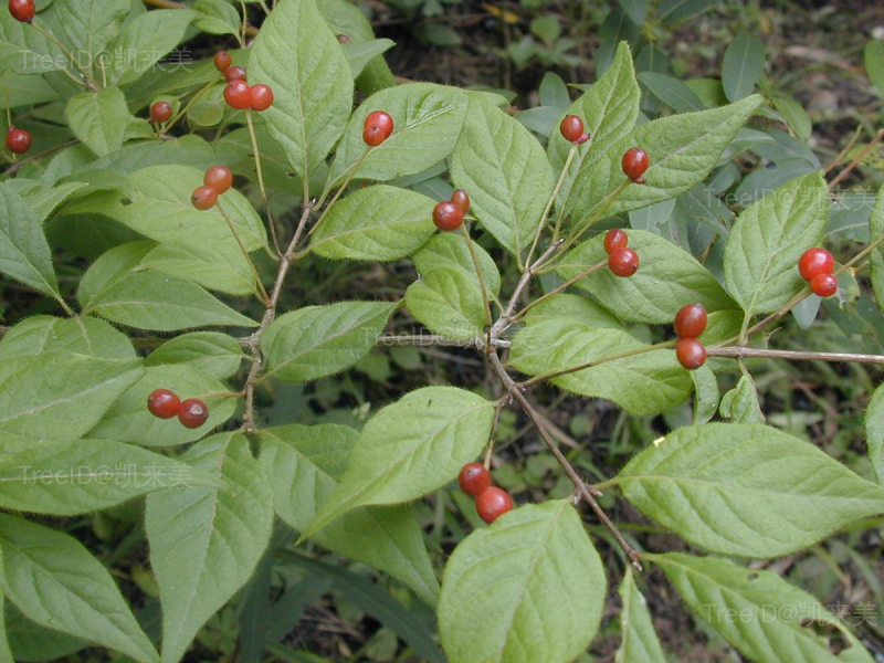叶菱状卵形至卵状披针形,长4-8厘米,两面被糙伏毛,有直缘毛。总花梗细,长1.5-3厘米;相邻两萼筒分离;花冠先白色后变黄色,长1-1.5厘米,外面疏生短糙毛,唇形。果实红色,圆形,直径约5毫米。