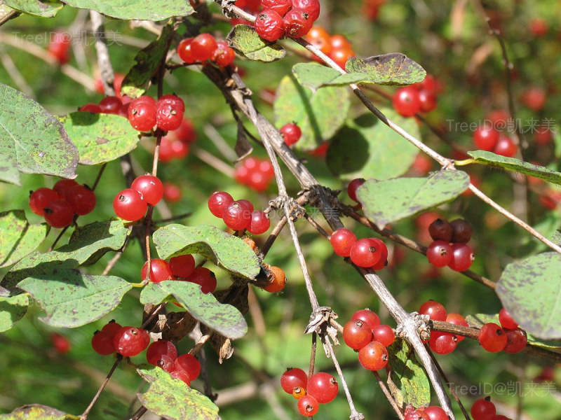 果实由橙黄色转为橙红色至红色,圆形,直径6-8毫米。