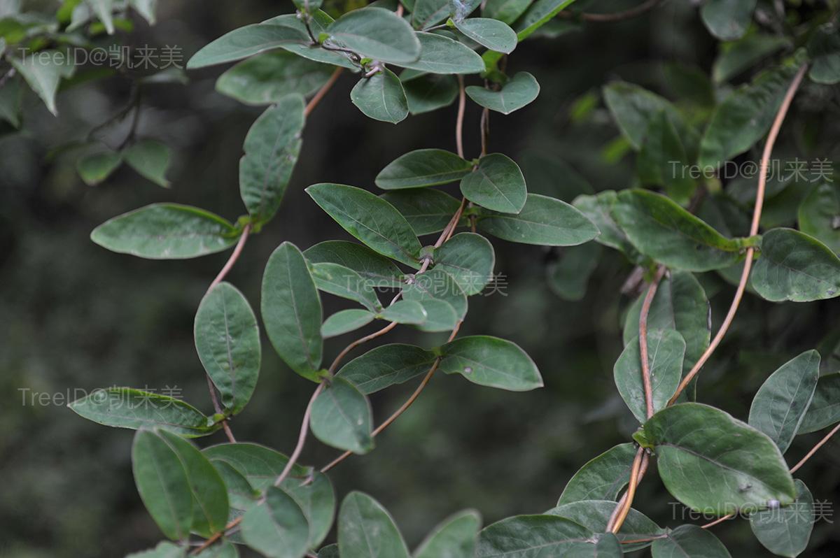 叶矩圆形或卵状矩圆形,长5-12厘米,下面被短糙毛,花序下方1-2对叶连合成近圆形的盘;叶柄极短或近无。3朵花组成的聚伞花序密集成头状花序生小枝顶端,共有6-9朵花;花冠黄色至橙黄色,长5-9厘米,唇形。果熟时由黄色转红黄色,最后变深红色,近圆形,直径约1厘米。