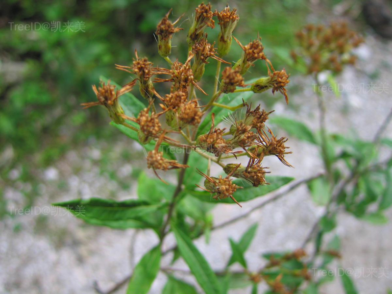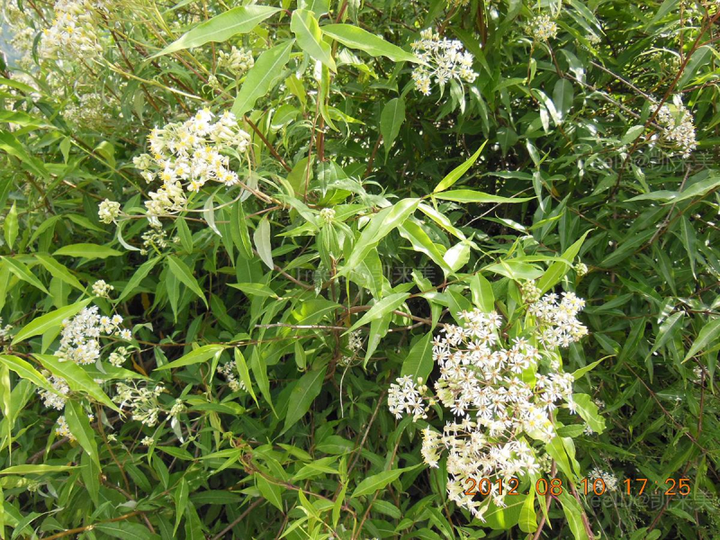 叶卵圆至披针形,长3-17厘米,宽1-3厘米,全缘或有浅齿,上部叶小,全部叶近无毛或两面被毛。头状花序径约5-7毫米,多数在茎和枝端排列成复伞房状。舌状花白色,浅红色或紫红色,长4-5毫米,宽0.6-1.2毫米;管状花黄色。