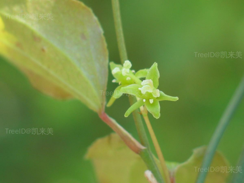 叶卵形或近圆形;叶柄长5-12毫米,向基部渐宽成鞘状。花单性,雌雄异株,绿黄色,有时淡红色,1-3朵或数朵排成伞形花序;总花梗纤细。浆果球形,熟时黑色。