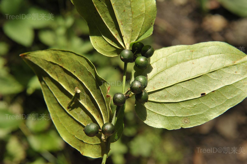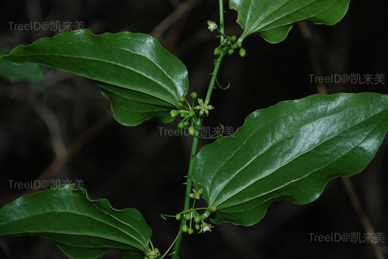 叶卵形或椭圆状卵形,长4-12.5厘米,宽2.5-8厘米,基部钝或浅心形;叶柄长5-15毫米。伞形花序单生于叶腋;总花梗短;花直径5-10毫米。浆果直径6-9毫米。