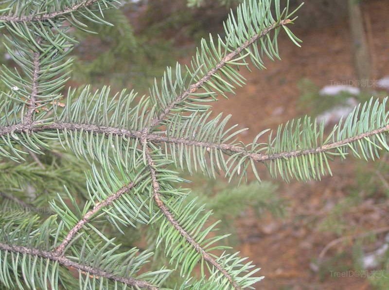 树皮灰褐色,不规则块状脱落。叶四棱状条形,螺旋状排列。球果长圆柱形,当年成熟,下垂。