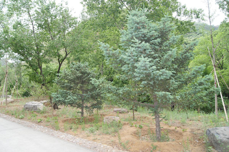 在海拔1600-2700米、气温较低、雨量及湿度较平原为高、土壤为灰色棕色森林土或棕色森林地带,常组成以白扦为主的针叶树阔叶树混交林。