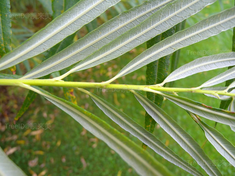 树皮灰绿色。单叶互生,具柄,条状披针形,上面暗绿色,下面有密绢毛,闪银光,边缘外卷,全缘或浅波状。花单性,雌雄异株,形成柔荑花序,先叶或与叶同时开放。蒴果圆形,密被绒毛。