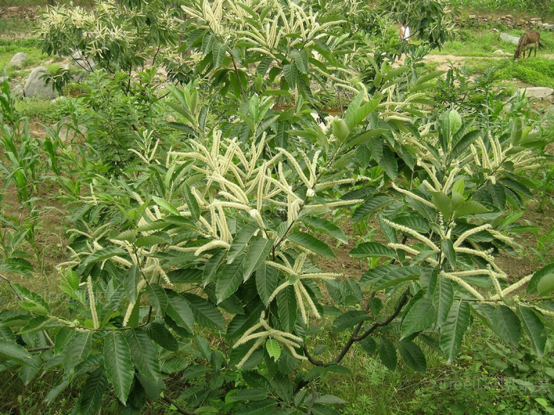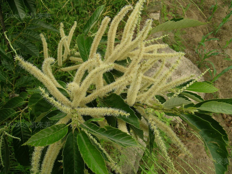 老树树皮纵裂。单叶互生,长圆形,侧脉直伸,在叶缘成芒状锯齿,叶背被灰白色毛。花单性同株,雄花序穗状,雌花数个着生于雄花序基部,2-3朵生于总苞内。壳斗具刺,全包坚果。坚果卵形,褐色。 喜光,不耐严寒。
