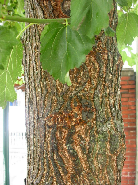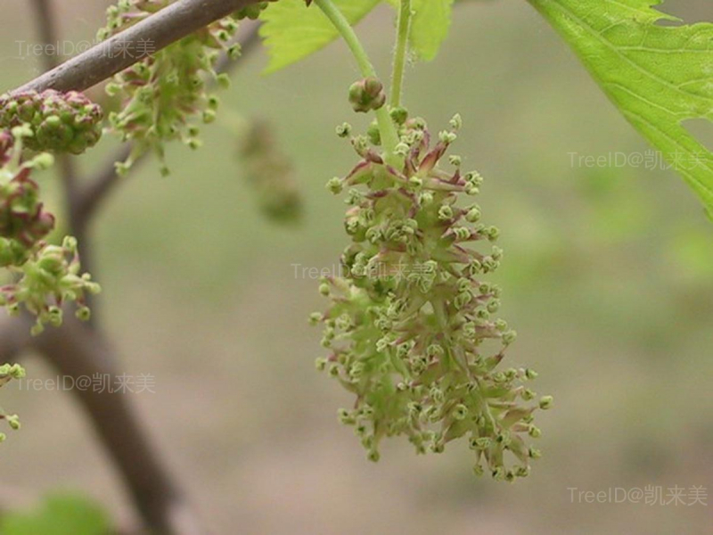 有乳汁。树皮浅纵裂,小枝灰白色。单叶互生,卵形或宽卵形,上面光滑,基部近心形,叶缘不规则分裂,具锯齿。花雌雄异株,组成柔荑花序。聚花果长圆形,成熟时肉质,黑紫色或白色。