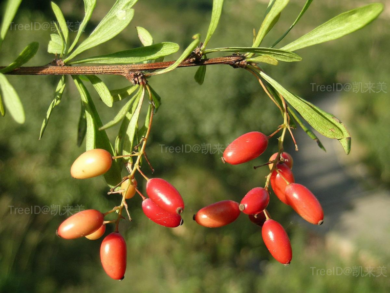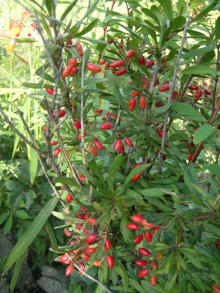 枝具棱槽,密生黑色小疣点。叶刺常3分叉;叶簇生于刺腋,狭倒披针形,全缘或中上部有锯齿。总状花序下垂;萼片6,2轮,花瓣6,鲜黄色,近基部具1对蜜腺。浆果长圆形,鲜红色。
