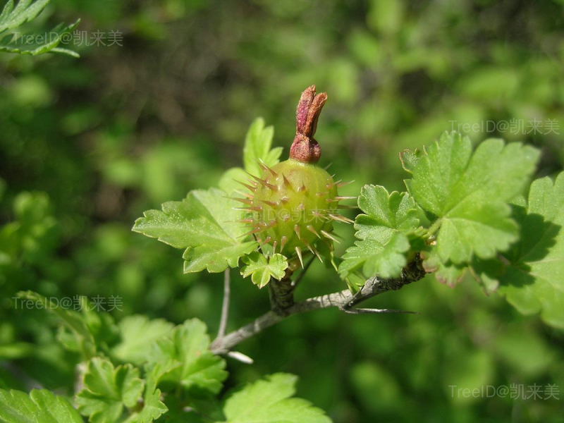 浆果圆形,具多数黄色细针刺,萼裂片宿存。