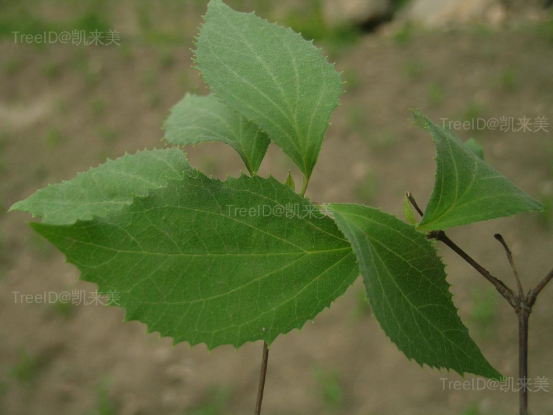 单叶对生,菱状卵形,边缘具不规则细锯齿,两面均有星状毛,并具中央射线。