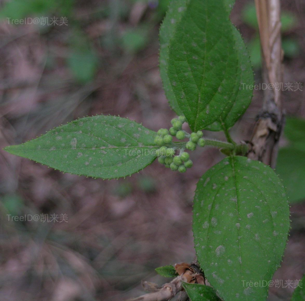 单叶对生,卵形至椭圆形,边缘具细密锯齿,两面均有星状毛,中脉上具白色长柔毛。