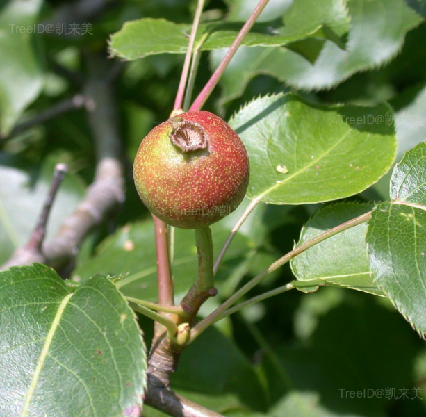 梨果近球形,黄绿色,萼片宿存。