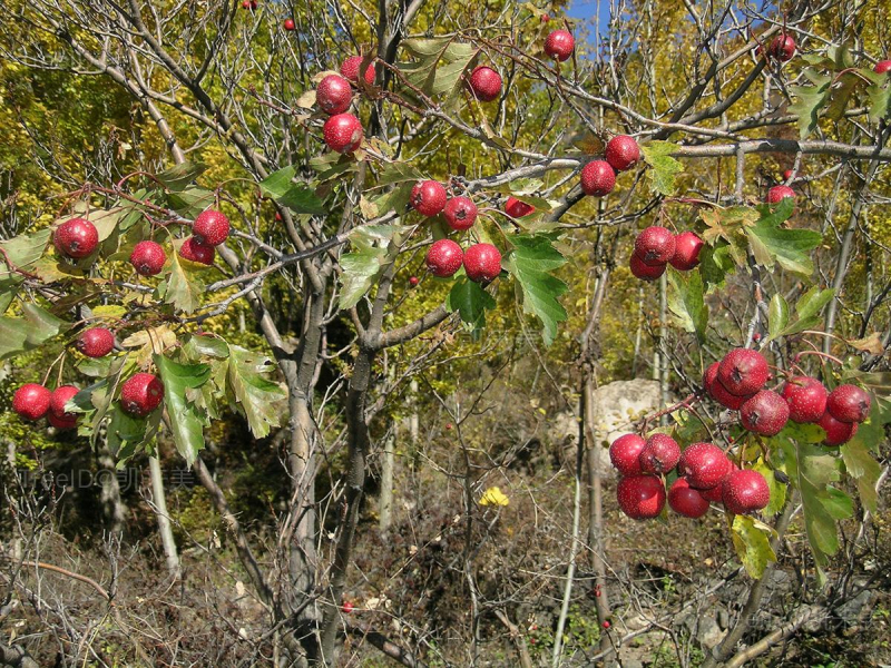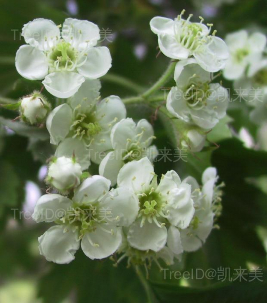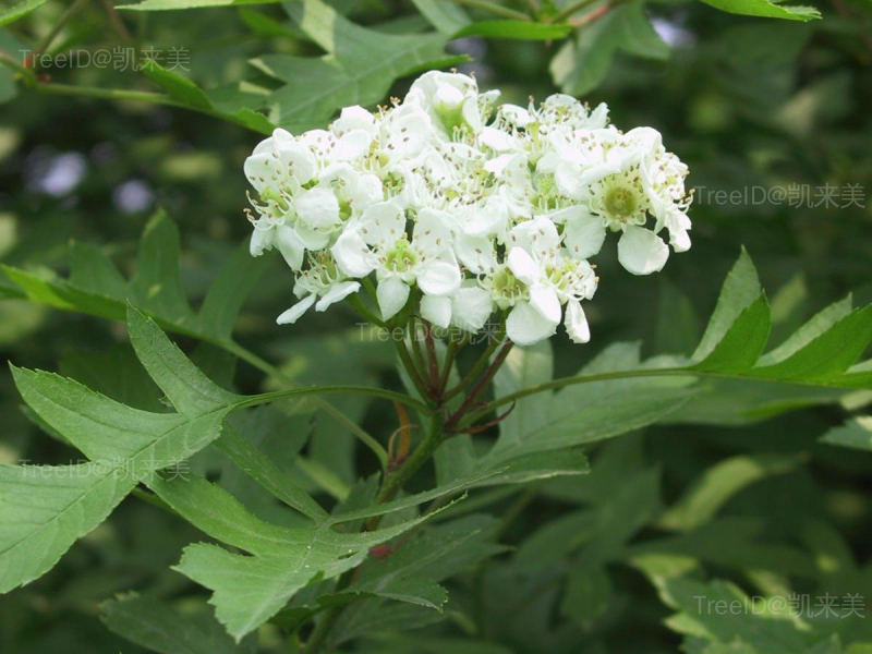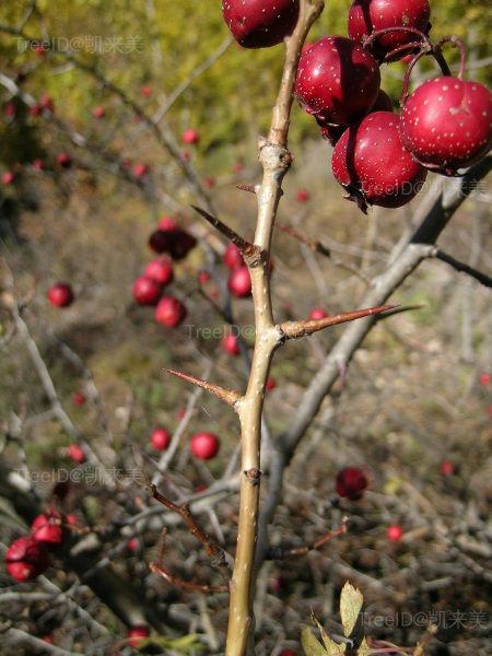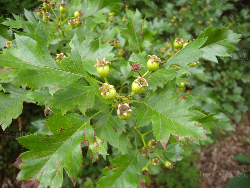 通常具枝刺。单叶互生,三角状卵形,常3-5羽状深裂,裂片边缘有不规则重锯齿。伞房花序具多花;萼筒钟状,花瓣5,白色。梨果近球形,深红色,有浅色斑点,萼片宿存。