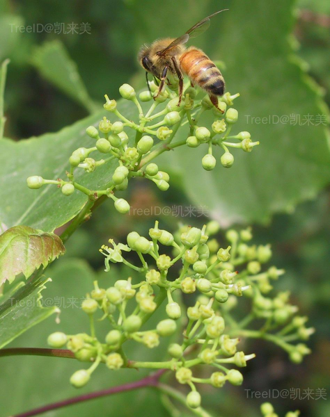 聚伞花序,与叶对生;花淡黄绿色,5基数。