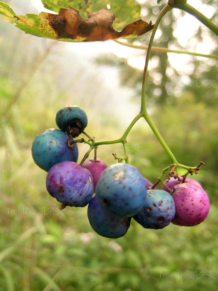 浆果球形,淡蓝色。