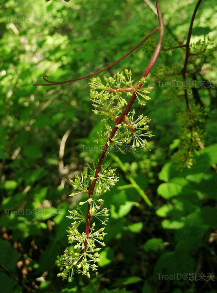 圆锥花序,与叶对生,花序轴被白色柔毛;花雌雄异株,黄绿色,5基数。