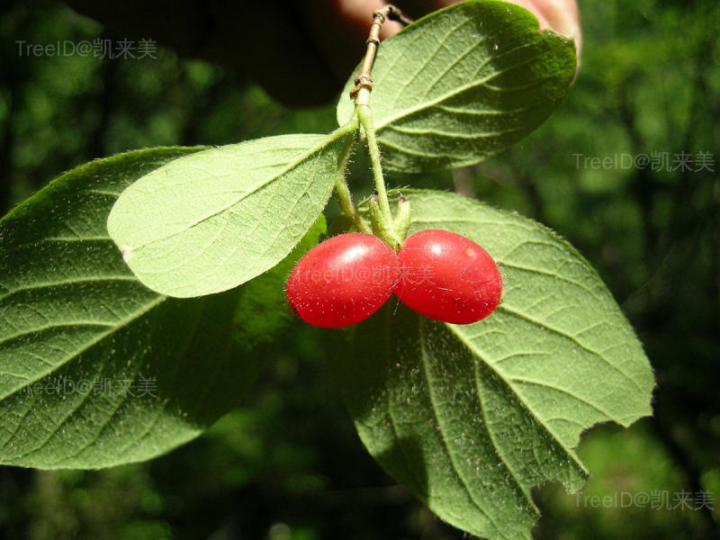 浆果红色,椭圆形。