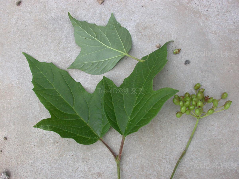 叶柄粗壮,上部有腺体。单叶对生,卵圆形,常3裂,裂片具齿。