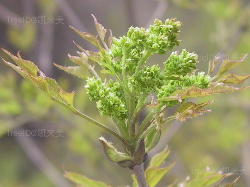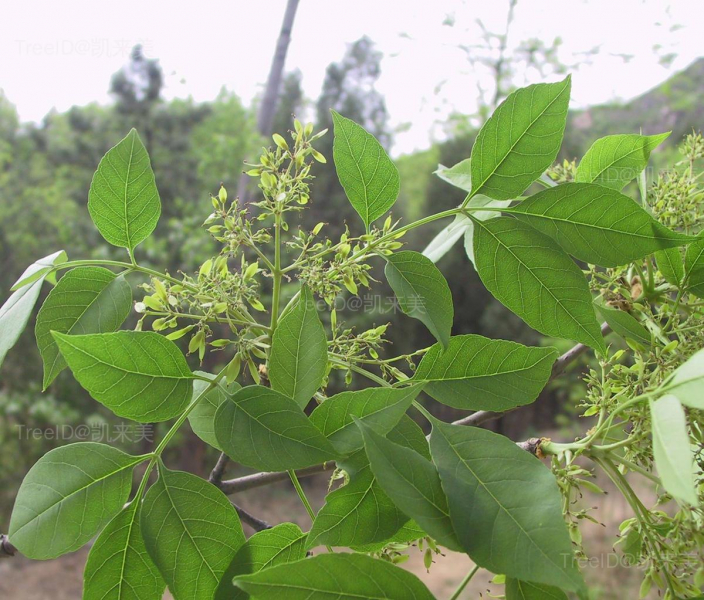 树皮灰褐色。奇数羽状复叶对生,小叶3-7,多为5,顶端小叶较大,阔卵形至椭圆形,侧生小叶长卵形或椭圆状倒卵形,下面沿脉被褐色毛。圆锥花序;萼钟状,无花冠。翅果倒披针形。