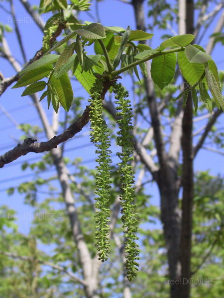 树皮灰色,浅纵裂。奇数羽状复叶大型,小叶9-19,长圆形,具细锯齿。雄柔荑花序腋生下垂,雌穗状花序于新枝顶生,具花4-10。核果卵球形,外果皮密被腺毛,果核具8条纵脊及雕刻状花纹。