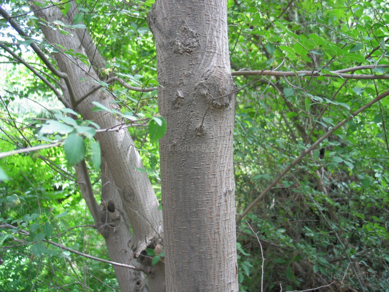 乔木,树皮淡灰色,平滑;小枝褐色,无毛。