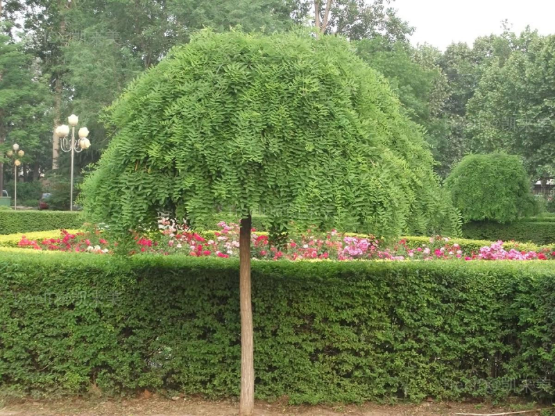 国槐的芽变品种,落叶乔木,高达25米;当年生枝绿色,无毛。