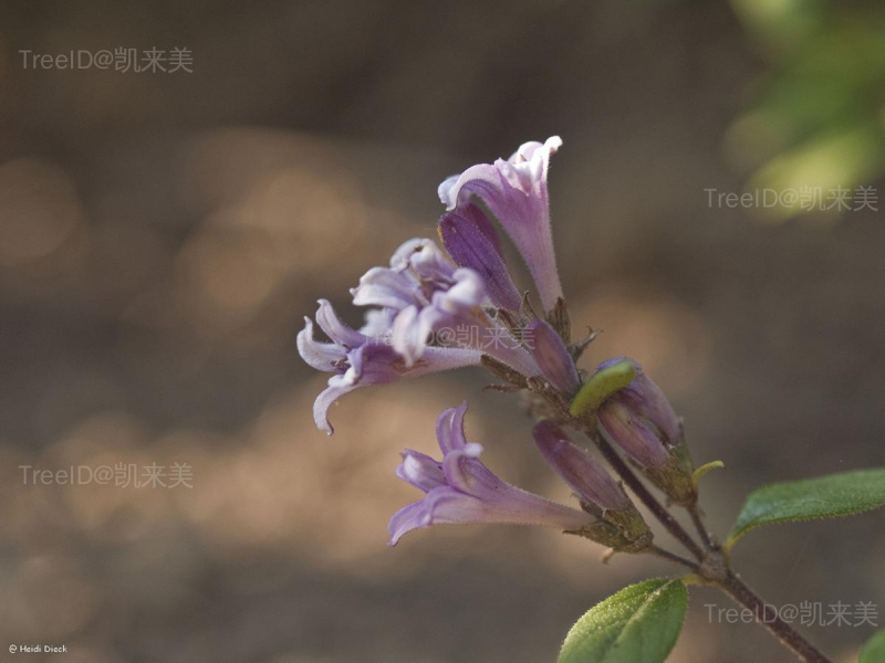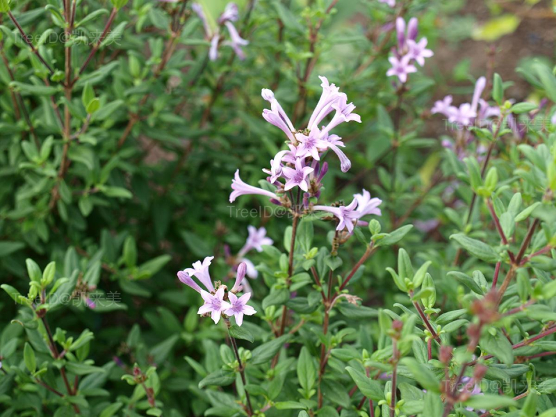 花通常5数,无梗,2-10朵簇生于枝顶或叶腋内;小苞片合生,透明,具脉,长3-4毫米;花萼长2.5毫米,裂片矩圆形,比萼筒短,有睫毛;花冠淡红色,漏斗状,长1.2-1.5厘米,外被粉末状柔毛,裂片披针形,长为花冠筒的1/4或1/5。