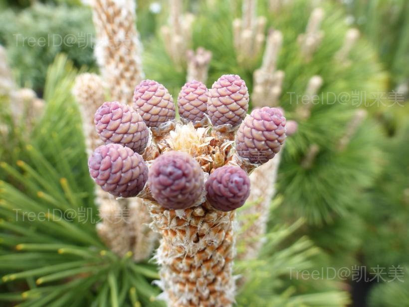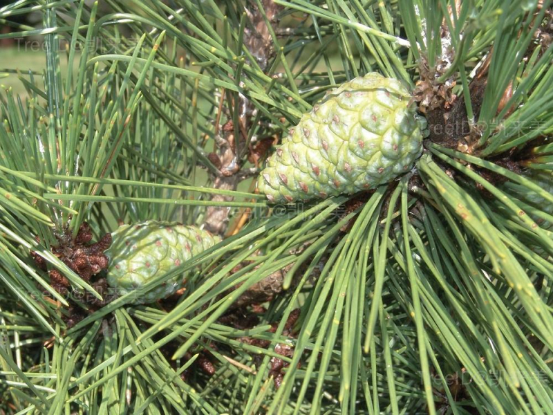 球果成熟前绿色,熟时褐色,圆锥状卵圆形或卵圆形,长4-6厘米,径3-4厘米,有短梗,向下弯垂;中部种鳞卵状椭圆形,鳞盾微肥厚,横脊显著,鳞脐微凹,有短刺;种子倒卵状椭圆形,长5-7毫米,径2-3.5毫米,连翅长1.5-1.8厘米,种翅灰褐色,有深色条纹;子叶5-10(多为7-8)枚,长2-4厘米,初生叶条形,长约2厘米,叶缘具疏生短刺毛,或近全缘。花期4-5月,种子第二年10月成熟。